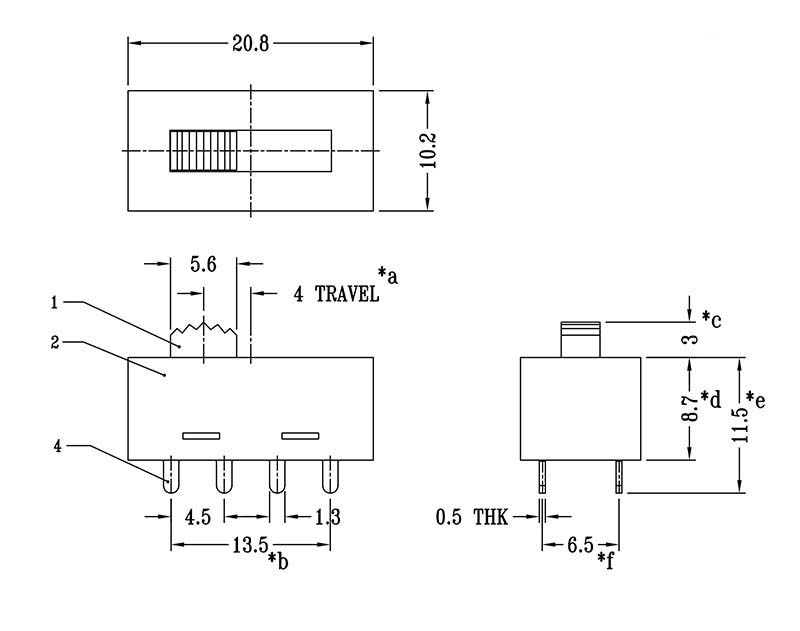 三檔開關 SS-23H30 塑膠直插 撥動開關