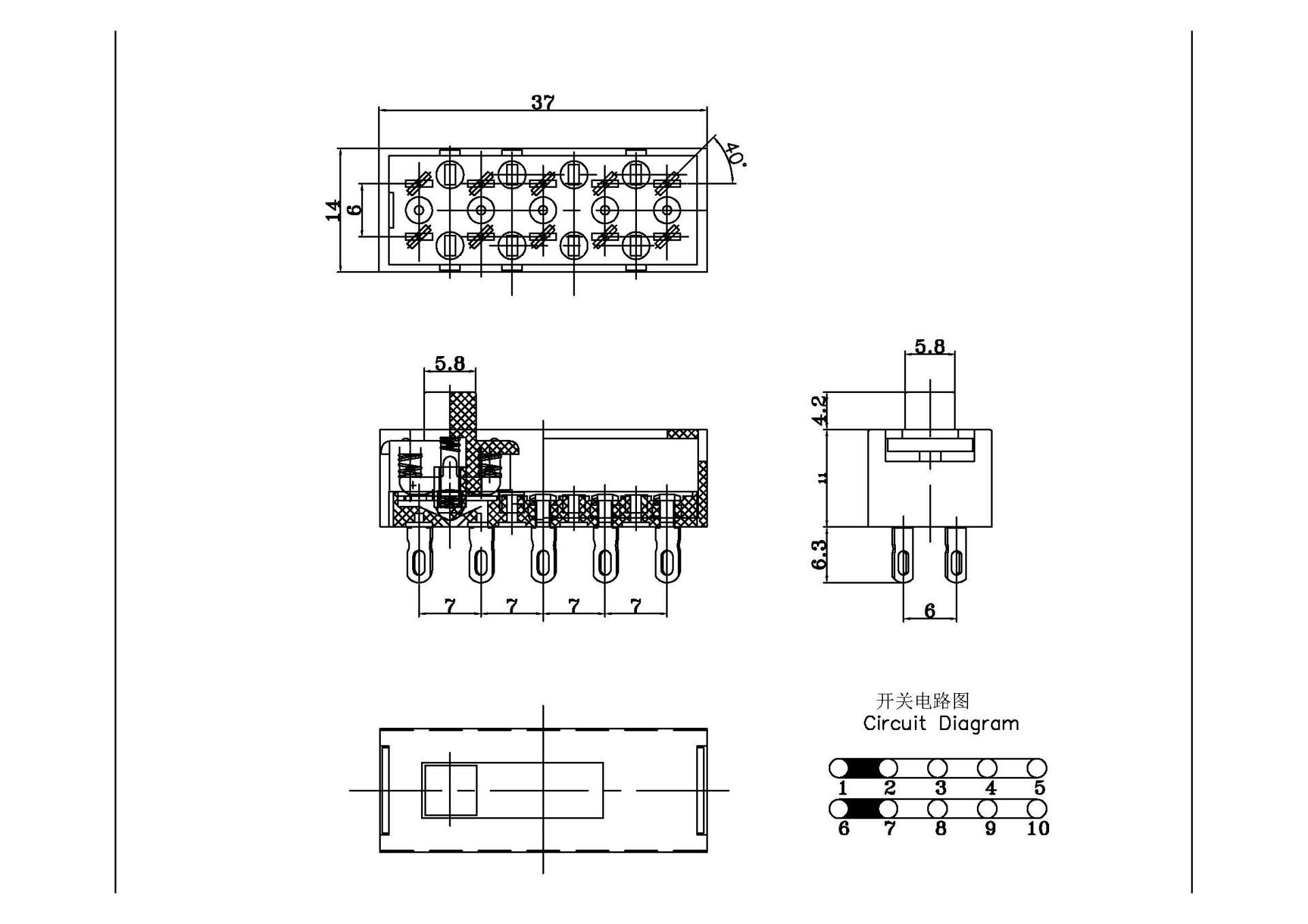 四檔滑動開關MF-SS-2416 塑膠撥動開關