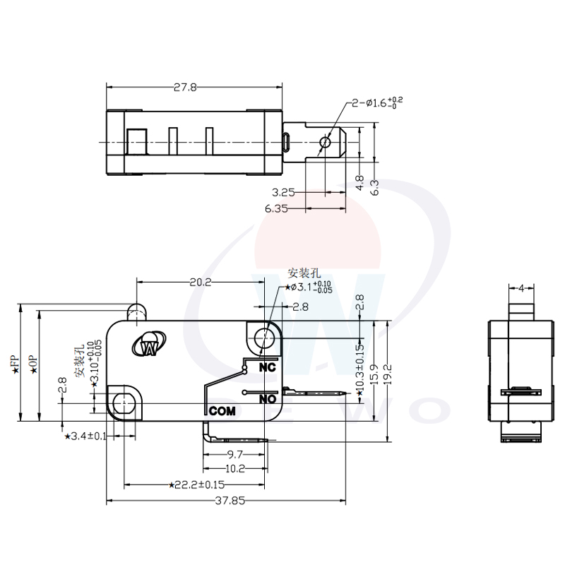 額定負載:5(2)A 125/250VAC,0.1A 125/250VAC